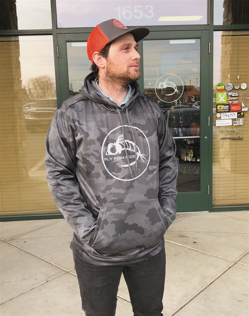 100% synthetic performance lightweight hoodie. Perfect for spring or fall fishing!