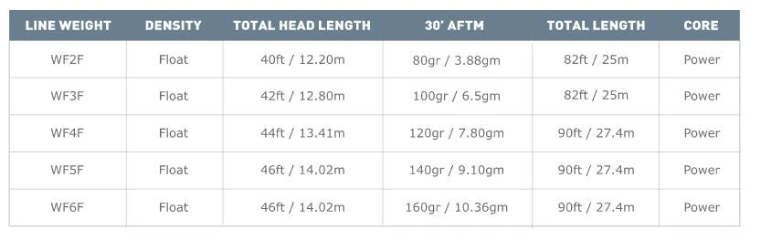 Long front taper for beautiful turn over. Longer head for control at distance. Smaller tip diameter for presenting smaller flies. Haul zone extends usable head length. Ultra-thin running line shoots like hell, takes up less spool space. Now with our new Ridge 2.0 treatment, this line makes it even easier to reach those fish out at distance with the utmost accuracy.