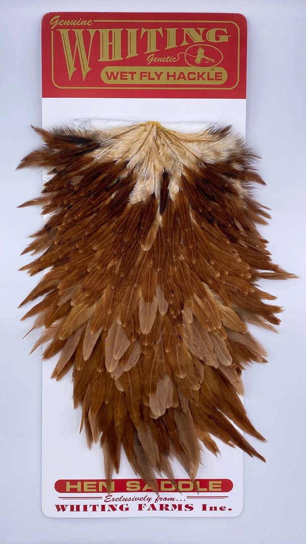 Whiting Red Label Hen Saddle. This is a great soft hackle material. The length of the overall feathers is relatively long because they are the hens from the red label line. Also good on streamers.