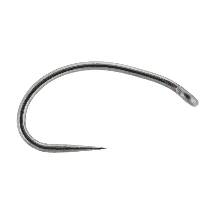 This hook is meant for getting your chironomids down deep and for holding huge fish. The shape is very similar to the Hanak 300, but features heavy wire. Curved shank, Extra-long needle point, heavy wire, black nickel, barbless. 25 per pack
