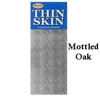 Thin Skin is a .004″ thick, stretchable and transparent sheet material that has a matte finish on one side and a shiny finish on the other. It is backed with a paper backing which makes it easy to cut into strips of all sizes. When the paper is removed, the transparent sheet can easily be tied onto the fly.The printed patterns on our Thin Skin can create an extremely realistic and/or dramatic look to the fly. Because Thin Skin stretches and compresses when thread or wire is wrapped around it, it is an ideal material to use for shellbacks on flies such as scuds or sowbugs or for wing cases on nymphs of all types. Many bass and saltwater fly tyers often use it to tie segmented crayfish and shrimp patterns.